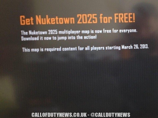 A new message on Black Ops 2 on Xbox 360 has confirmed that Nuketown 2025 MP map will be a mandatory download starting March 26th. Nuketown 2025 is available for free to download now on Xbox LIVE.