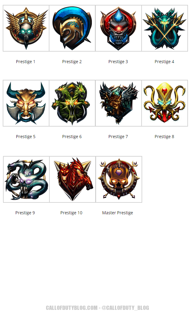 Treyarch revealed via their twitter the Black Ops 3 prestige emblems. There are 10 levels of Prestige, but you can also earn the Prestige Master emblem to show that you really are better than everyone.